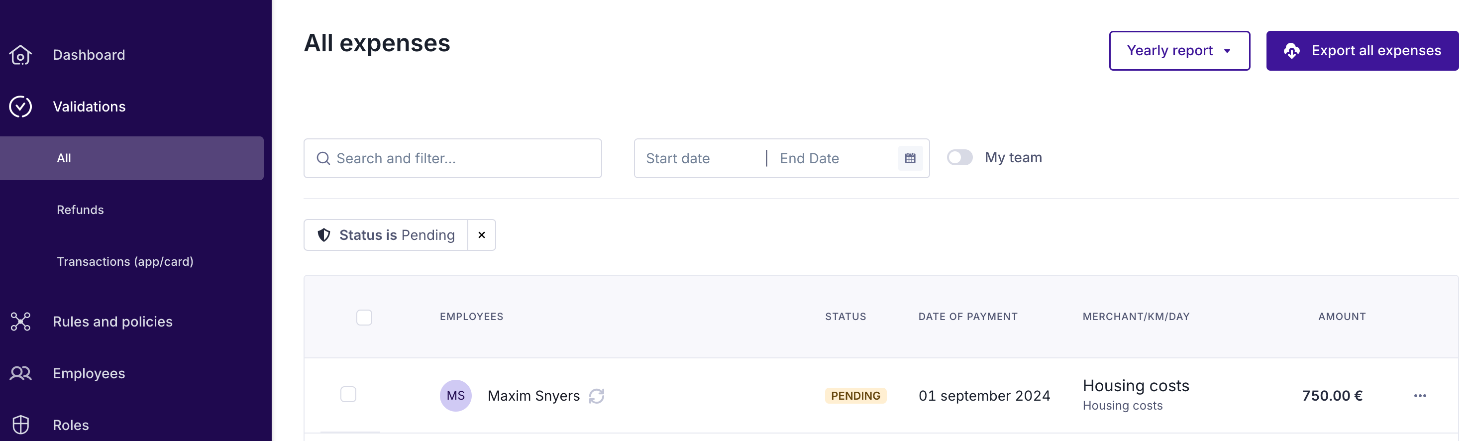 💡 Expenses can be validated one by one or in bulk