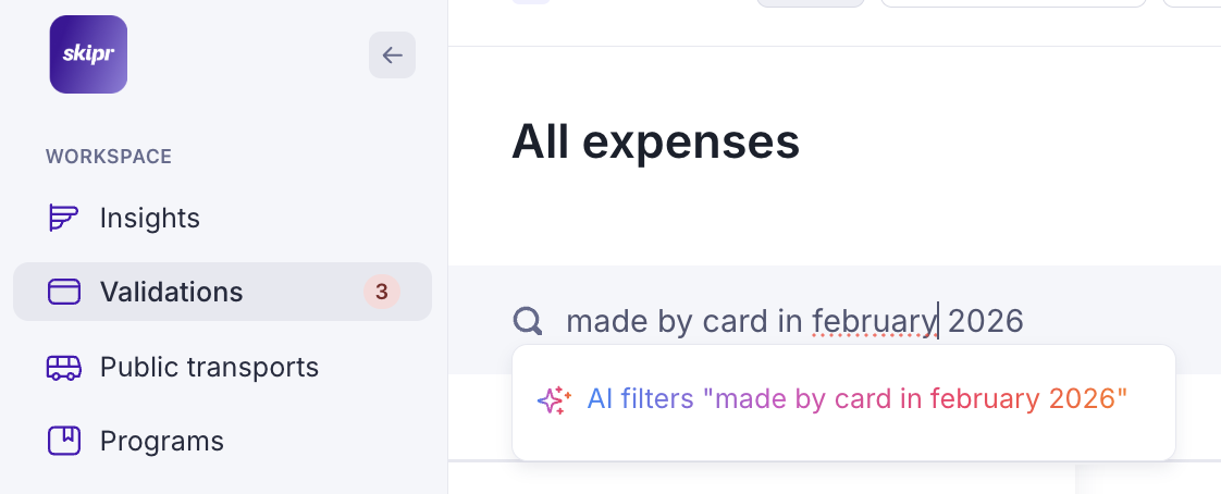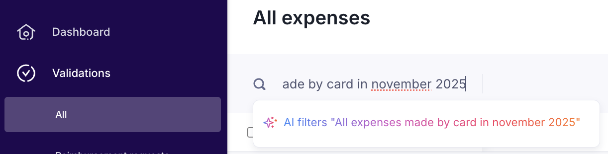 In this article we explain how to filter the list of expenses using AI and the different ways to validate one or several expenses: