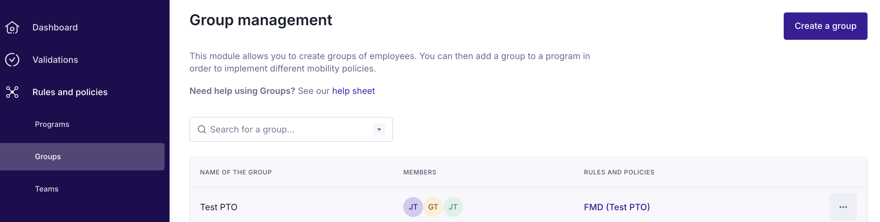 Once the group is created, it must be added to the correct mobility program. If you don't have a program yet, you need to create it: