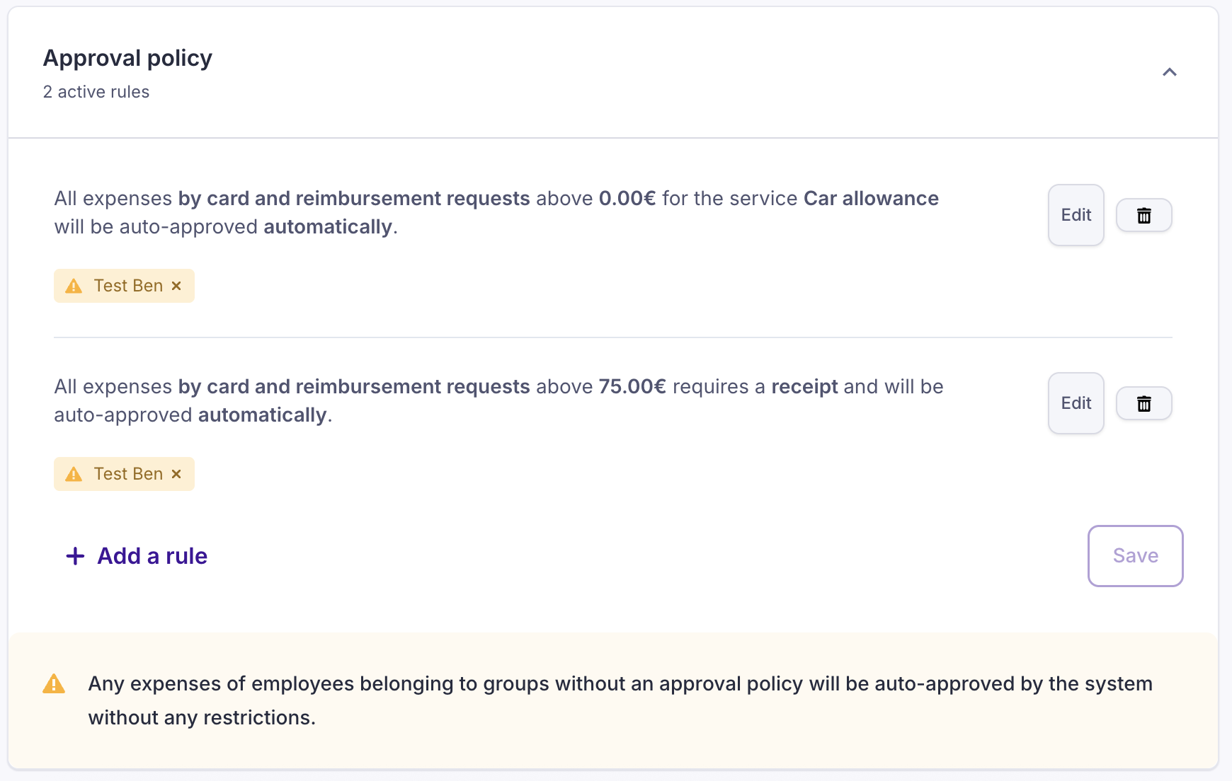 You can also set a variety of "Approval Policies" to manage the expenses and reimbursements.