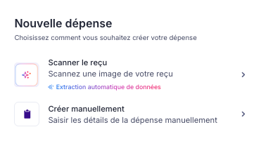 Sélectionnez « Scanner le reçu » pour prendre une photo du document, ou « Ajouter un document » pour choisir un document ou une photo depuis votre téléphone.