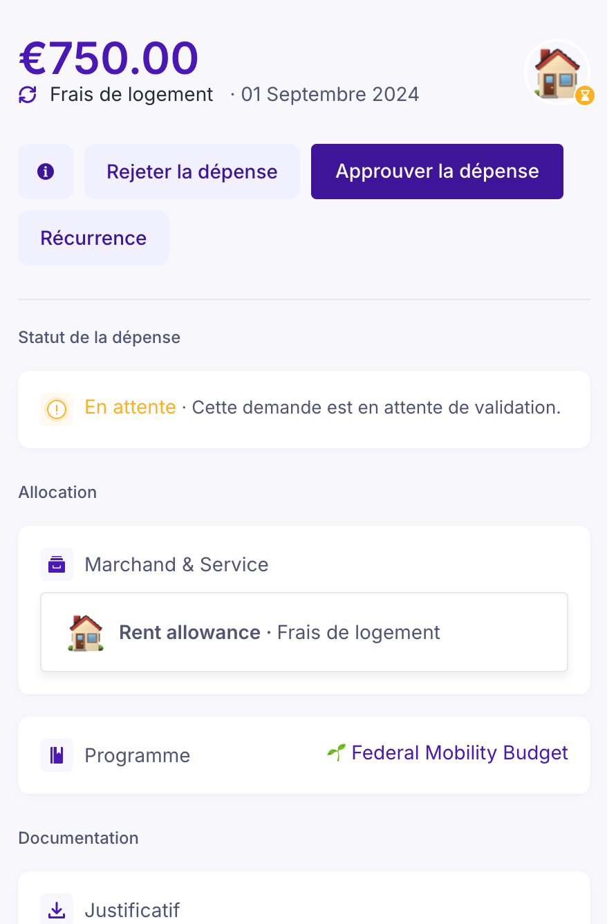 - Sélectionnez la dépense que vous souhaitez valider.