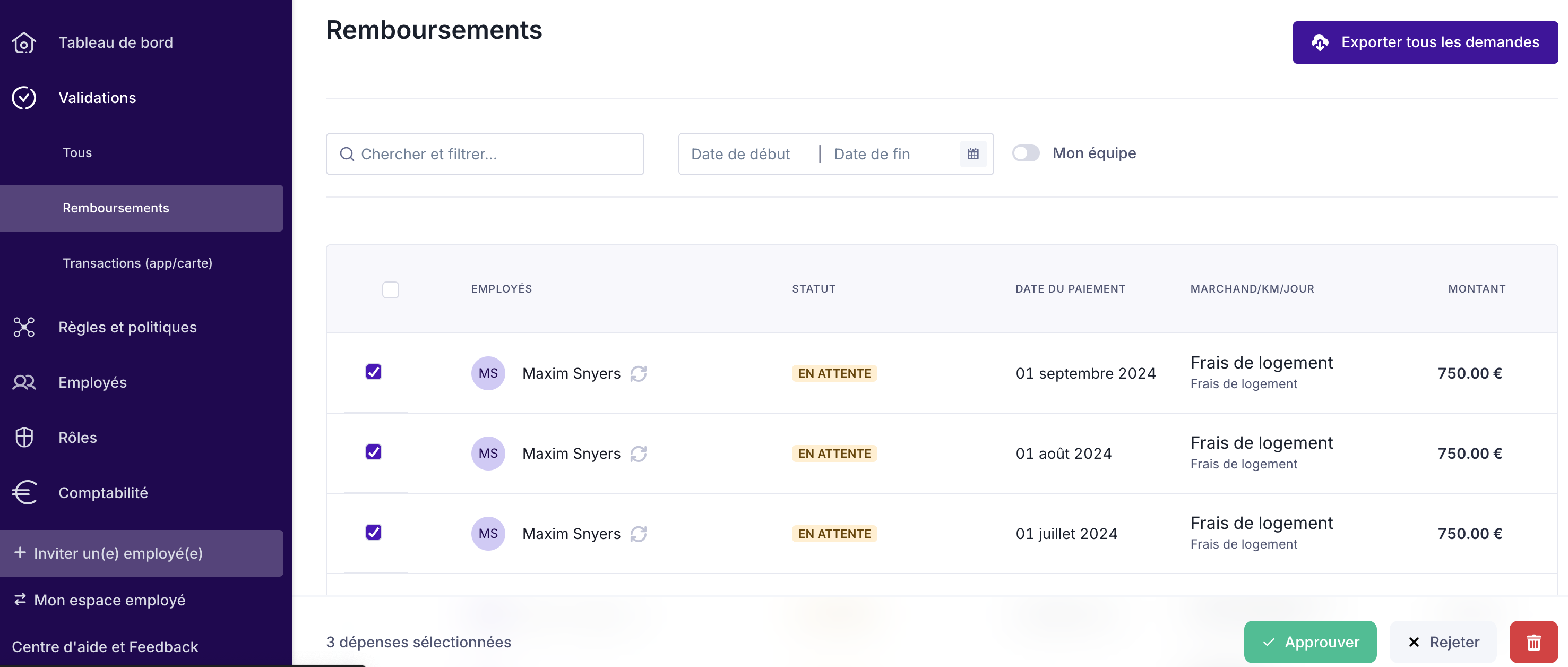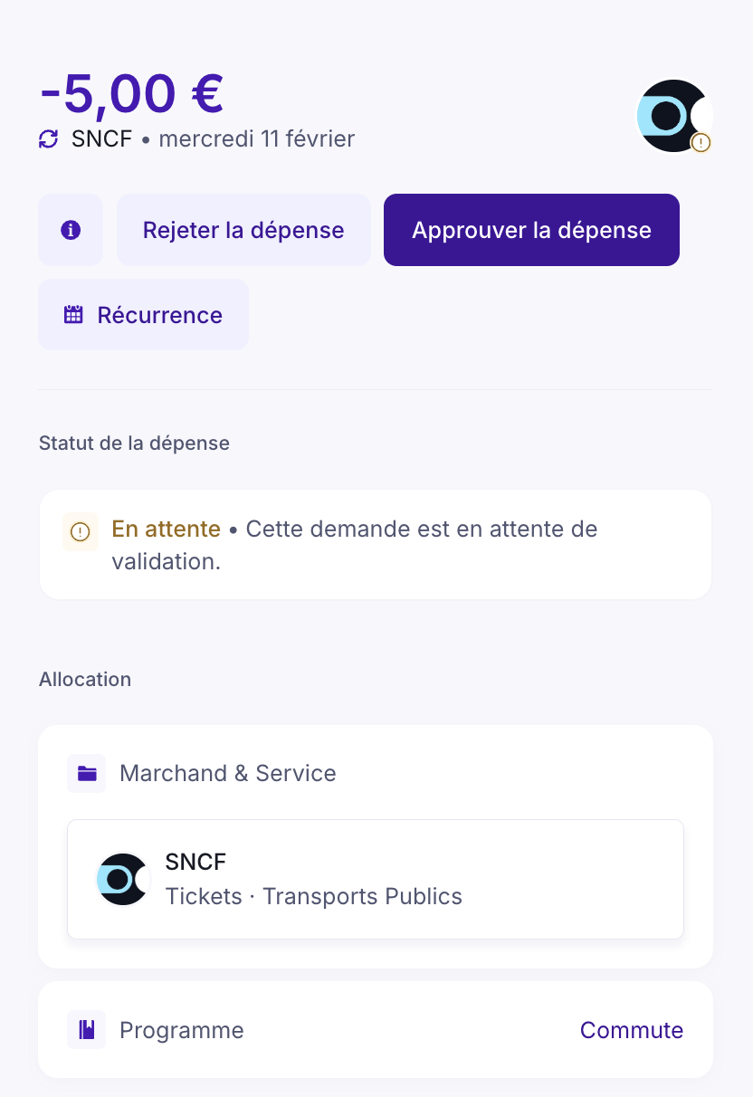 - Approuvez, rejetez ou supprimez les dépenses.