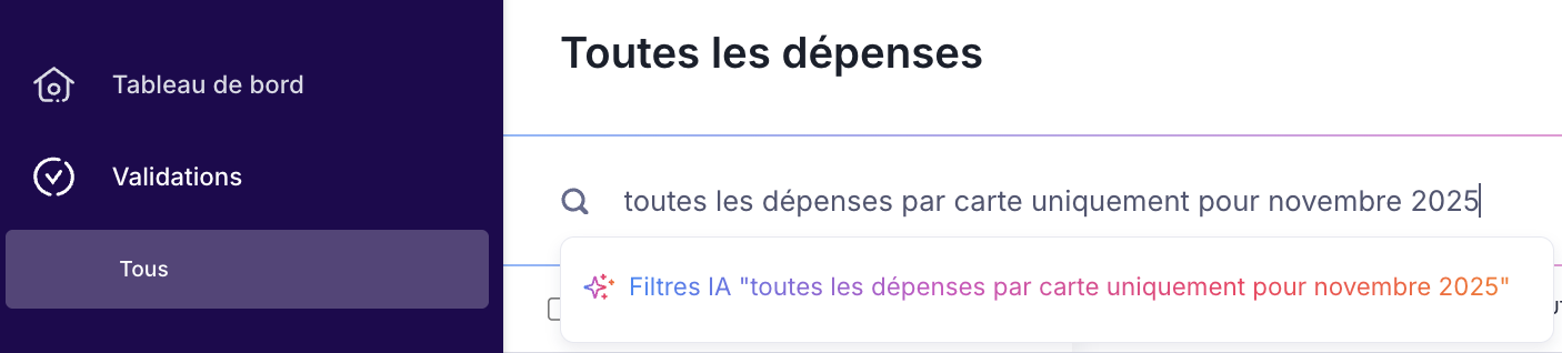 Dans cet article, nous expliquons comment filtrer la liste des dépenses à l’aide de l’IA et les différentes façons de valider une ou plusieurs dépenses.