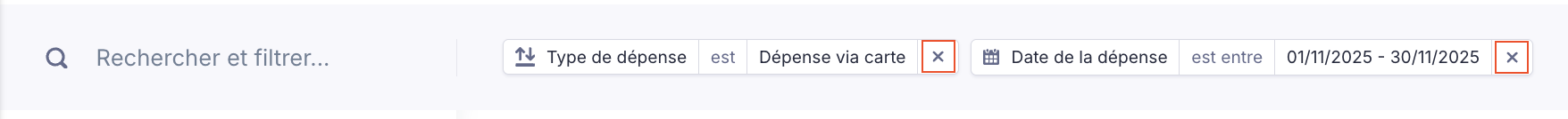 Vous pouvez filtrer la liste de toutes les dépenses en utilisant les filtres manuels, ou en utilisant notre fonctionnalité de filtres IA.