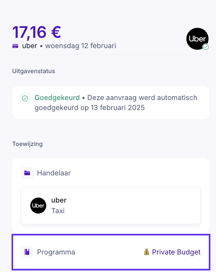 Nadat je dit hebt gedaan, krijg je toegang tot de details van de aanvraag/uitgave.