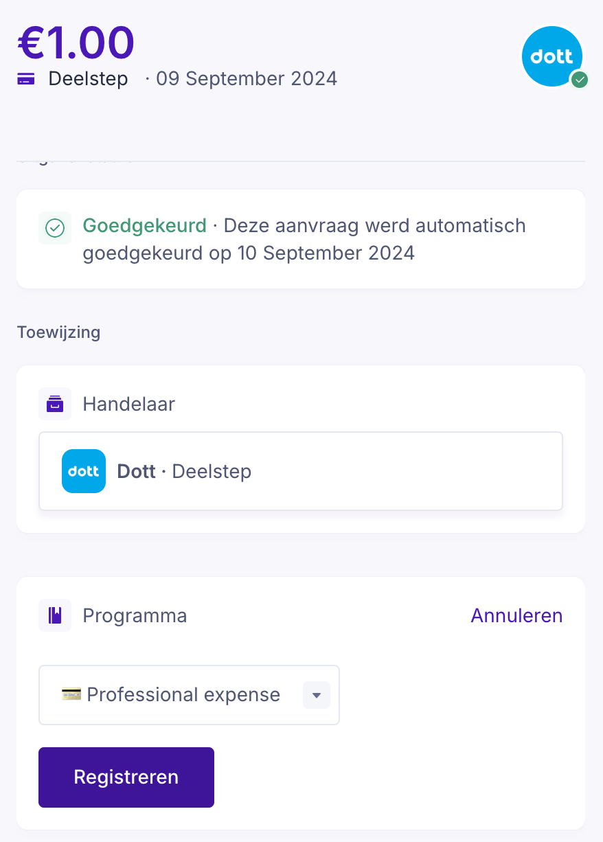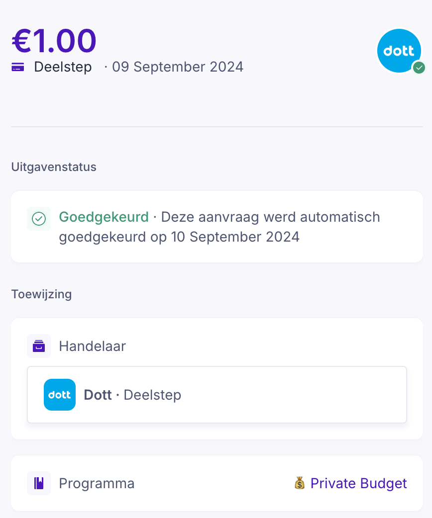 Als je deel uitmaakt van meer dan één budget (Mobiliteitsprogramma), kun je een uitgave eenvoudig aan een ander programma toewijzen: