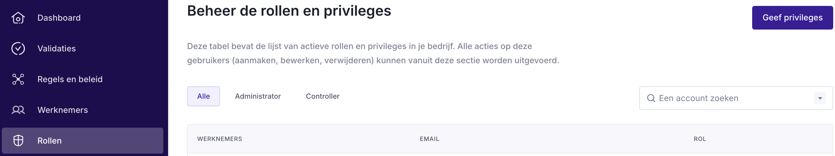 - Klik op "Geef privileges"