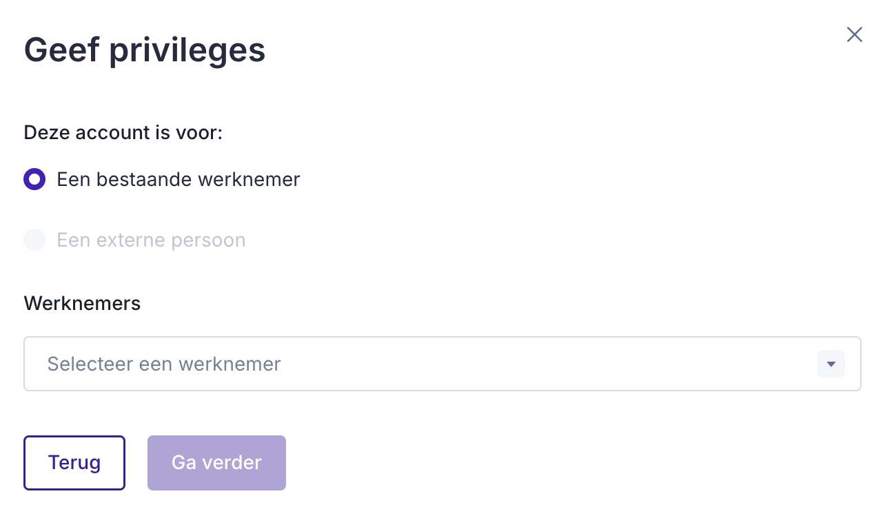💡 Om beheersrechten te geven aan iemand die geen medewerkersaccount heeft, neem contact op met de klantendienst.