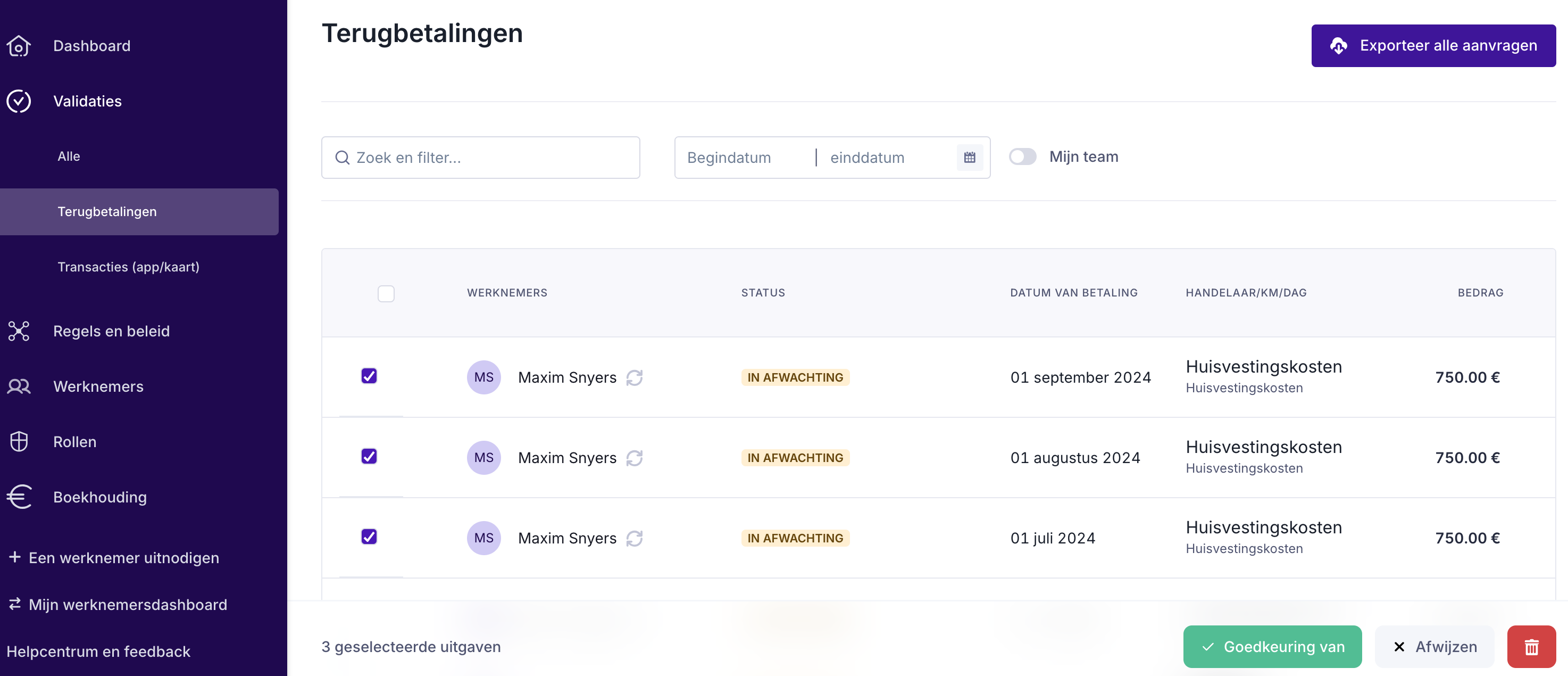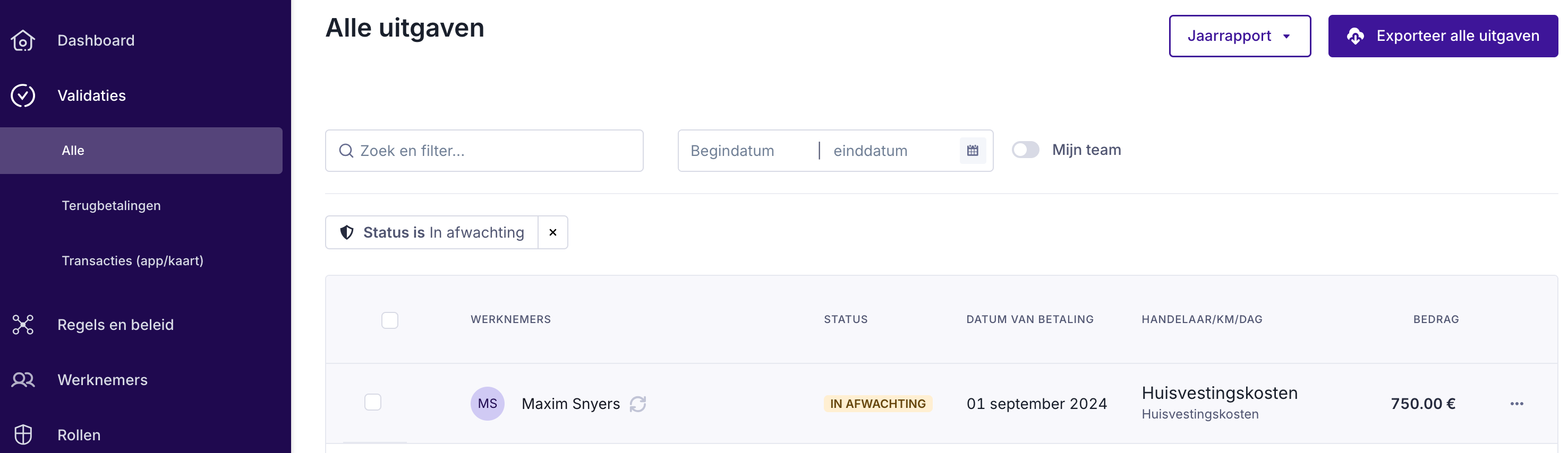 💡 Uitgaven kunnen één voor één of in bulk gevalideerd worden.